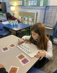 Each day during literacy stations, students practice a wide variety of reading, spelling, phonics and vocabulary skills. Today, students learned what a compound word was. They learned that a compound is made up of two or more different words put together to make one word with a new meaning. To practice this skill today, students worked with peers to read and match up different words to create other compound words. After matching up the cards, they wrote the completed words on a dry erase board. During this one activity, the students practiced phonics, blending, vocabulary, critical thinking, handwriting, and teamwork!