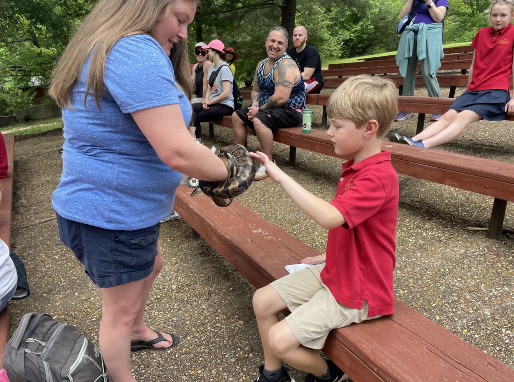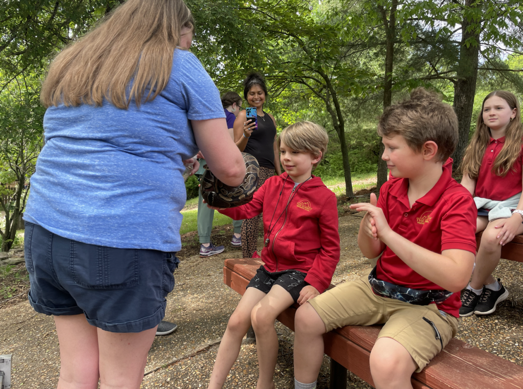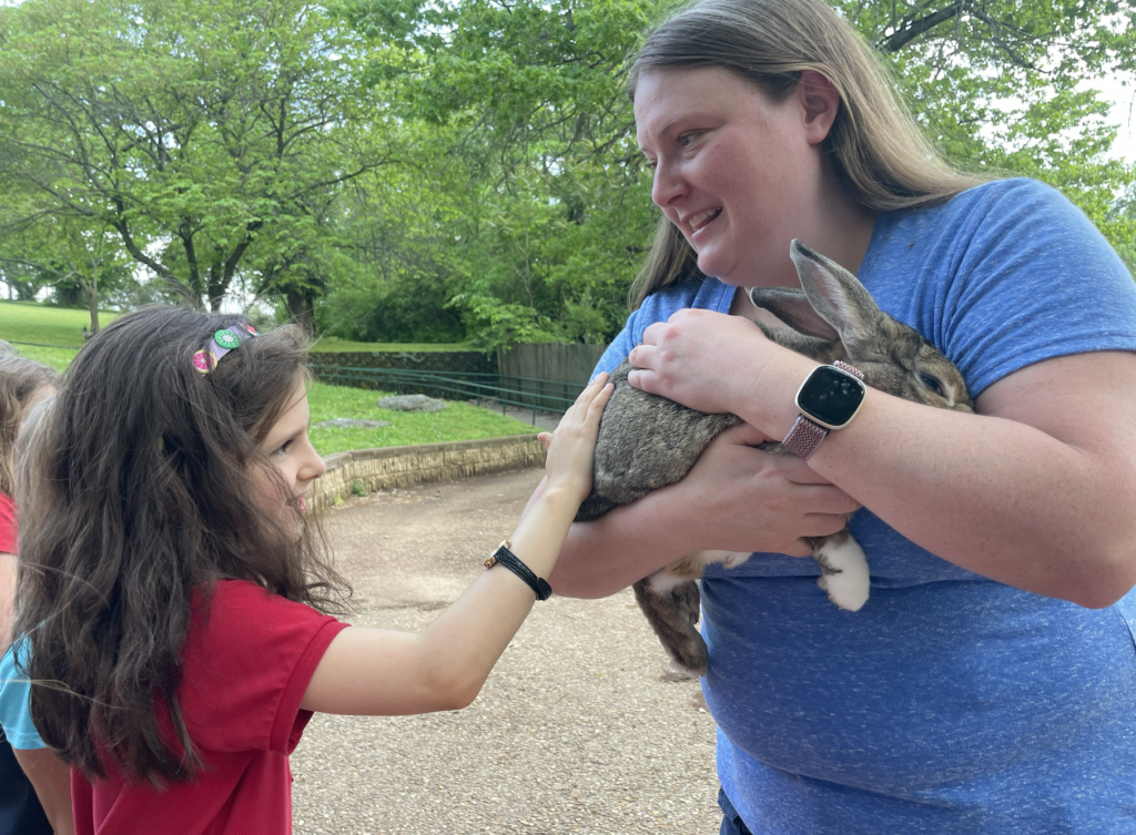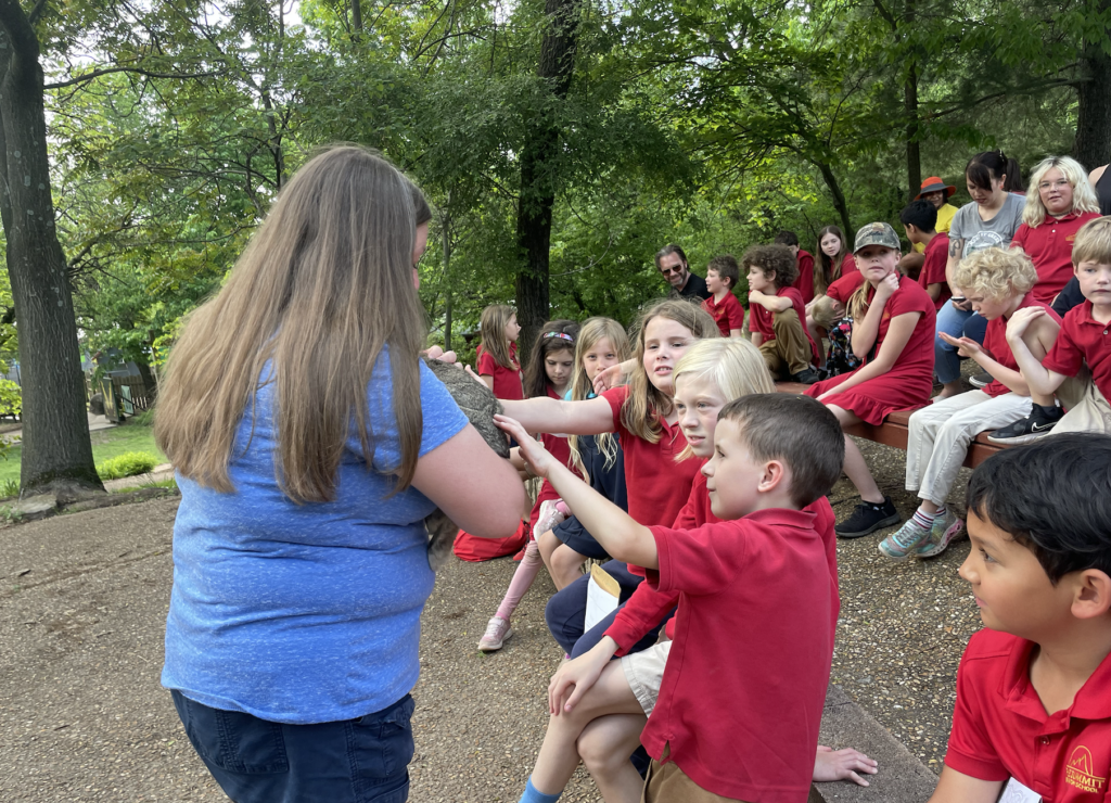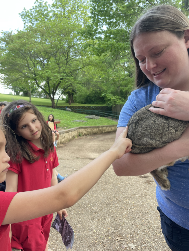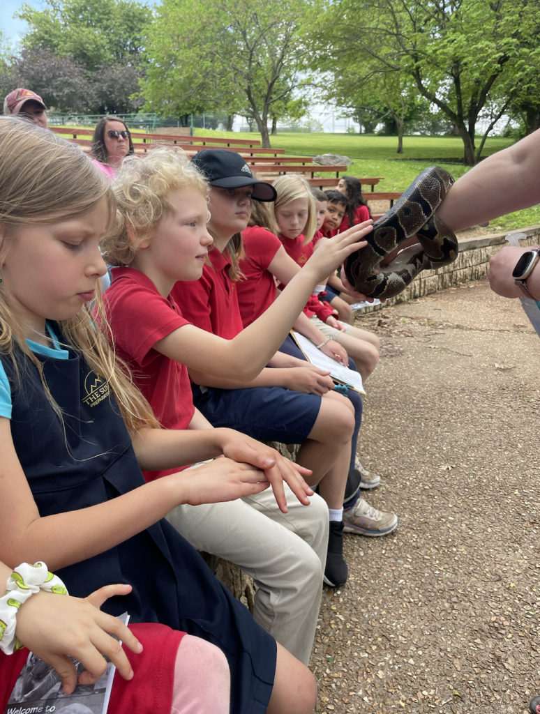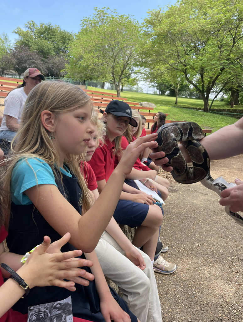 This week, the fifth and first graders went to the Dickerson Park Zoo! We had a fantastic day visiting the zoo, seeing animals and learning about their habitats! While there, students participated in a conservation education mini-class titled Animal Adaptations. Students demonstrated their knowledge of animal classifications, adaptations, and animal knowledge, and enjoyed learning more about some familiar animals. We got to see and touch a ball python and a cottontail rabbit.