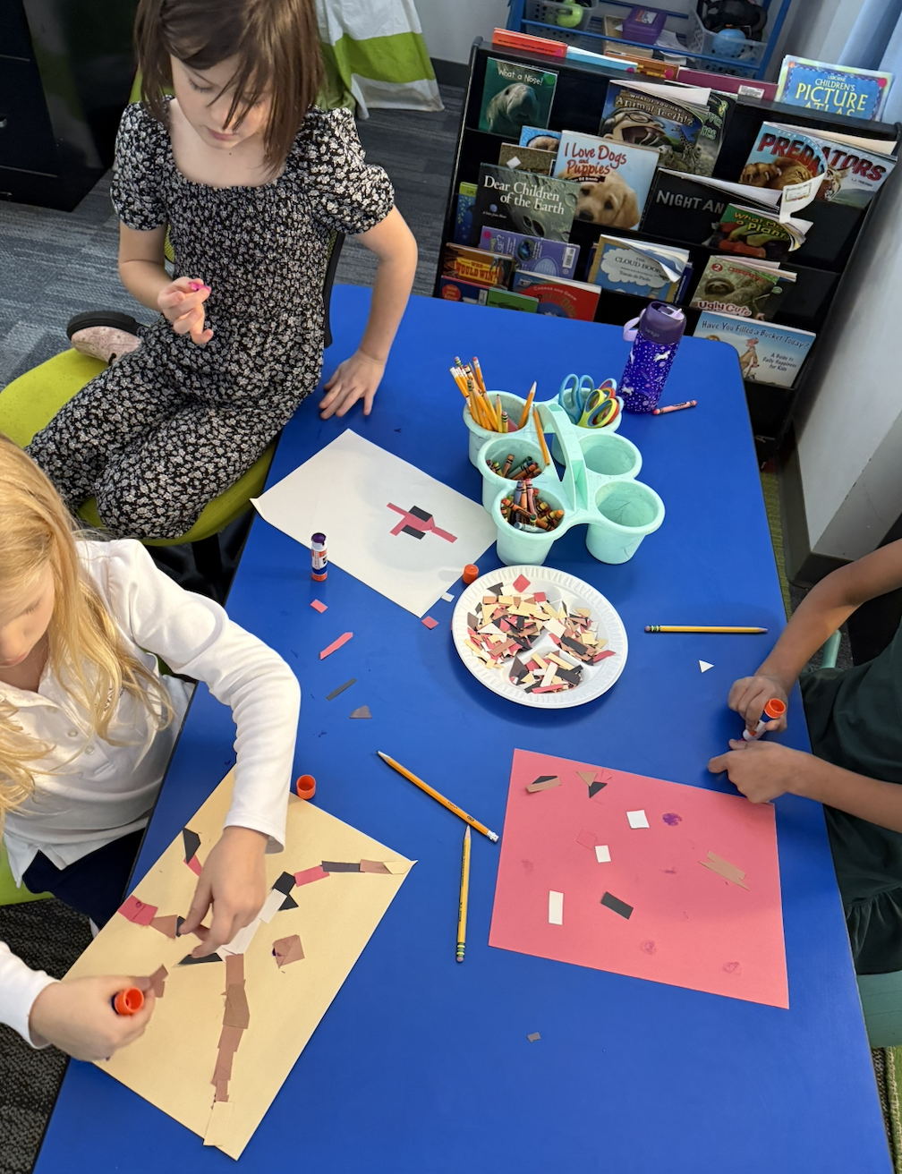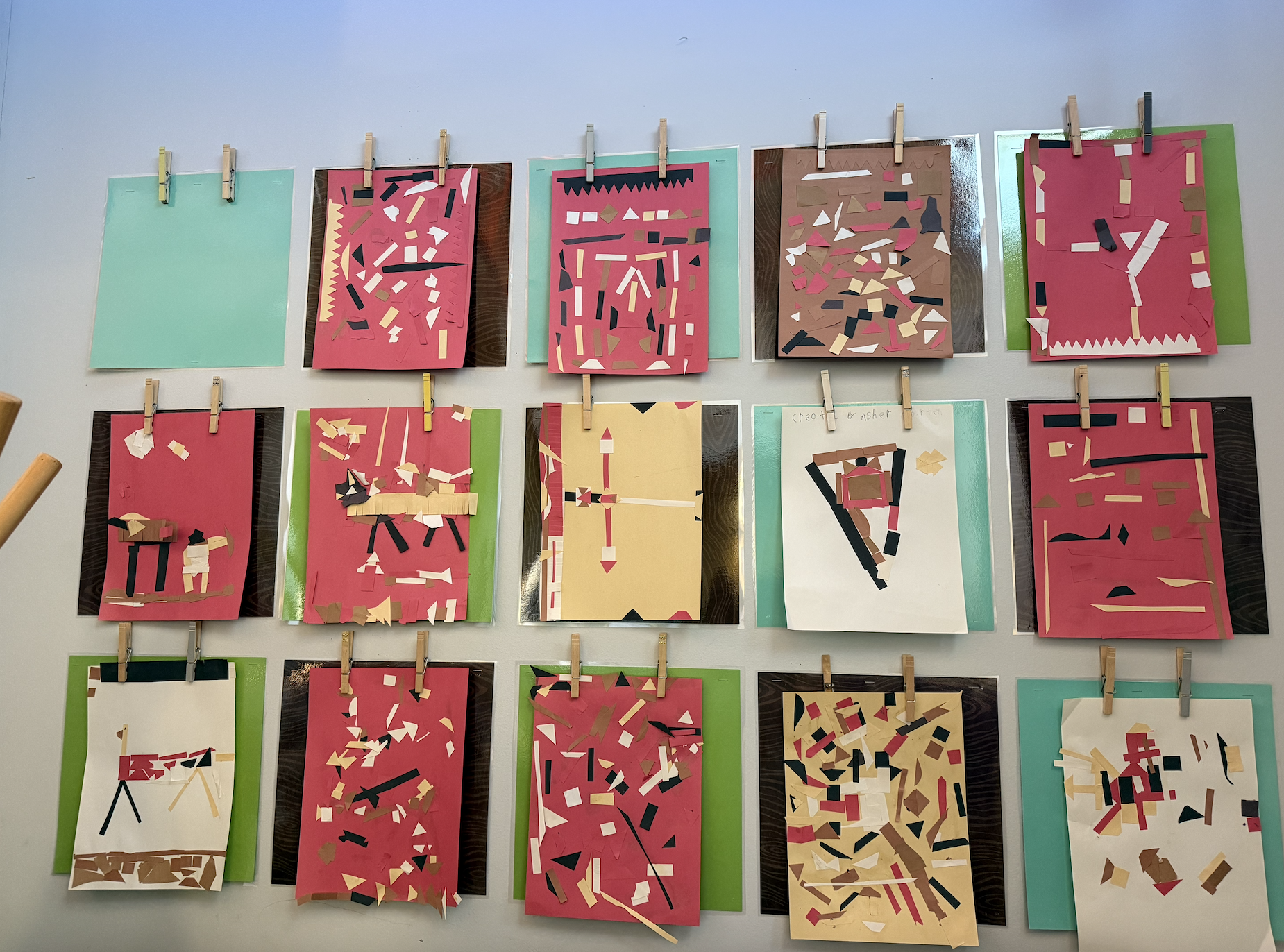 We learned many details about the rug-making process from our read aloud. Then, first grade students worked together to use videos, pictures and articles to research traditional Navajo rugs. We learned from our rad aloud that the rugs were made of goat’s wool. The dyes that the Navajo tribe had access to came from their native plants and resulted in rugs that were mostly red, black, white and brown. The rugs are famous for their distinct pattern made or triangles, squares, zig zags, diamonds and straight lines. We discussed how curved lines could not be easily made because of the way their looms used straight lines of yarn woven together to create the pattern. Students used construction paper in red, black, brown and white to create patterns and make their own work of art similar to the Navajo rugs.