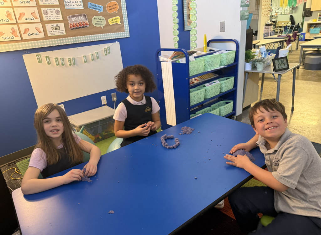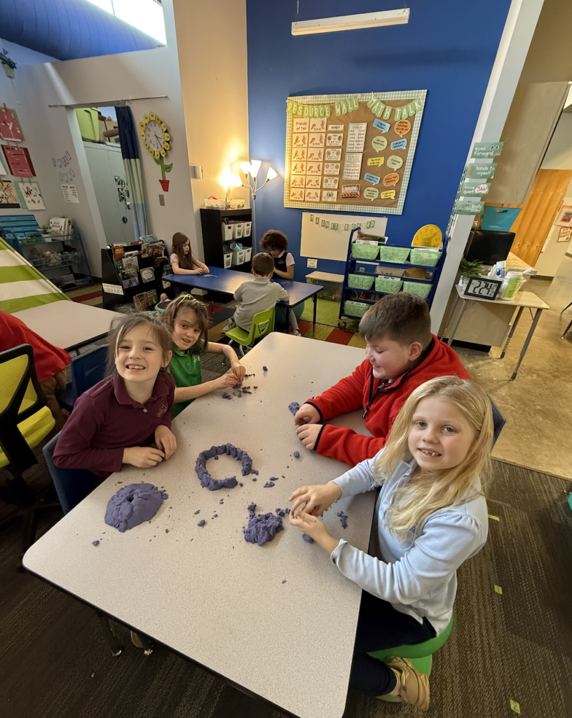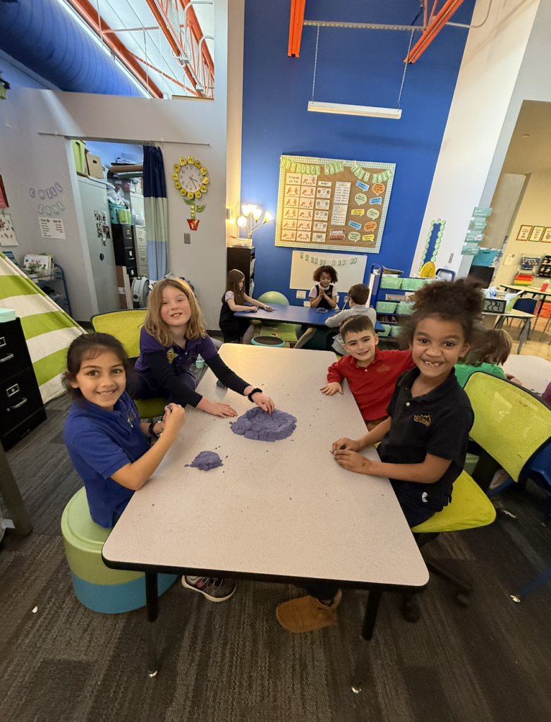 To learn about the experience of the Inuit people, we read a book called Arctic Son by Jean Craighead George. The book tells the story of a modern Inuit boy learning the traditions of his older family members. We also watched a video of an Inuit man and child building an igloo out out of snow. The next day, we attempted to build our own miniature igloos out of the closest thing we could find with the texture of snow – kinetic sand! Even with tools, this was no easy task! First graders worked with small groups to build the best igloo they could. The walls weren’t too bad but the top and arched doorways were particularly tricky!