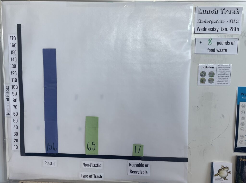 Second Trimester in Outdoor Ed. has been focused on environmentalism and sustainability. Educators from Missouri River Bird Observatory and Missouri Stream Teams United visited and discussed plastic pollution. Students learned about the causes and effects of plastic pollution, examined a plastic shirt under a microscope, and replicated trash moving through waterways to the ocean. Then they participate in a lunch audit where we collected and counted all the different types of trash thrown away during lunch in one day.
