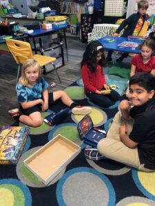 Second grade students had access to many objects of play throughout the day, including creativity, movement, imagination, music, building, sensory, and more. The students were allowed to visit classroom spaces, and participate in the many activities.