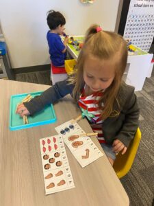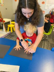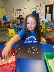 Today we started our study with what we can see on the outside of our body, our skin! We read a book about all that our skin does for us. The students were very interested about bones and particularly x-rays. There is something exciting about being able to look at a picture and see something that is on the inside of you that you can’t normally see! We talked about why a person would need an x-ray and of course, my recent x-ray of my foot came into the conversation again, haha! For our craft this week we are working on making our own x-rays. We practiced counting and one-to-one correspondence by having each student count out how many Q-Tip’s they were going to need for the x-ray of their hands.
