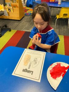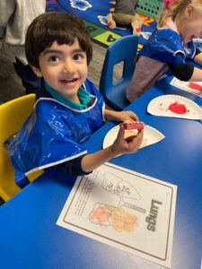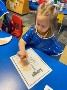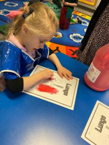 Then during center time the students each got an opportunity to sponge paint their lungs!