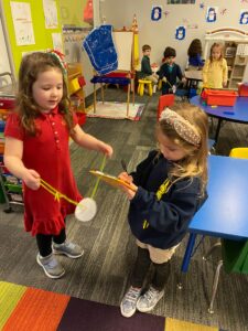 In our morning meeting today we watched a Dr. Bionics video about the lungs and what they do for our bodies! I then showed the “lungs” that I had made and I showed the students how they worked. We made connections with how the paper bag lungs work versus the lungs inside our body. We practiced taking several deep breathes in through our nose and out through our mouth to work our lungs. The students were pretty fascinated to see the paper bag lungs expanding and contracting with each breath. This would be a great demonstration to do at home with your student! All you need is either two paper bags (or two sandwich bags), two straws, and some tape!