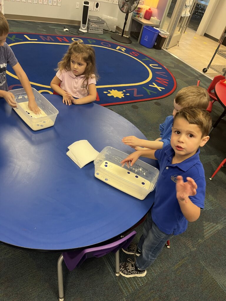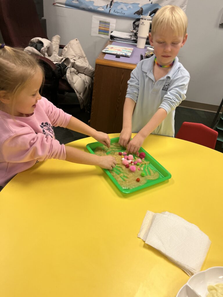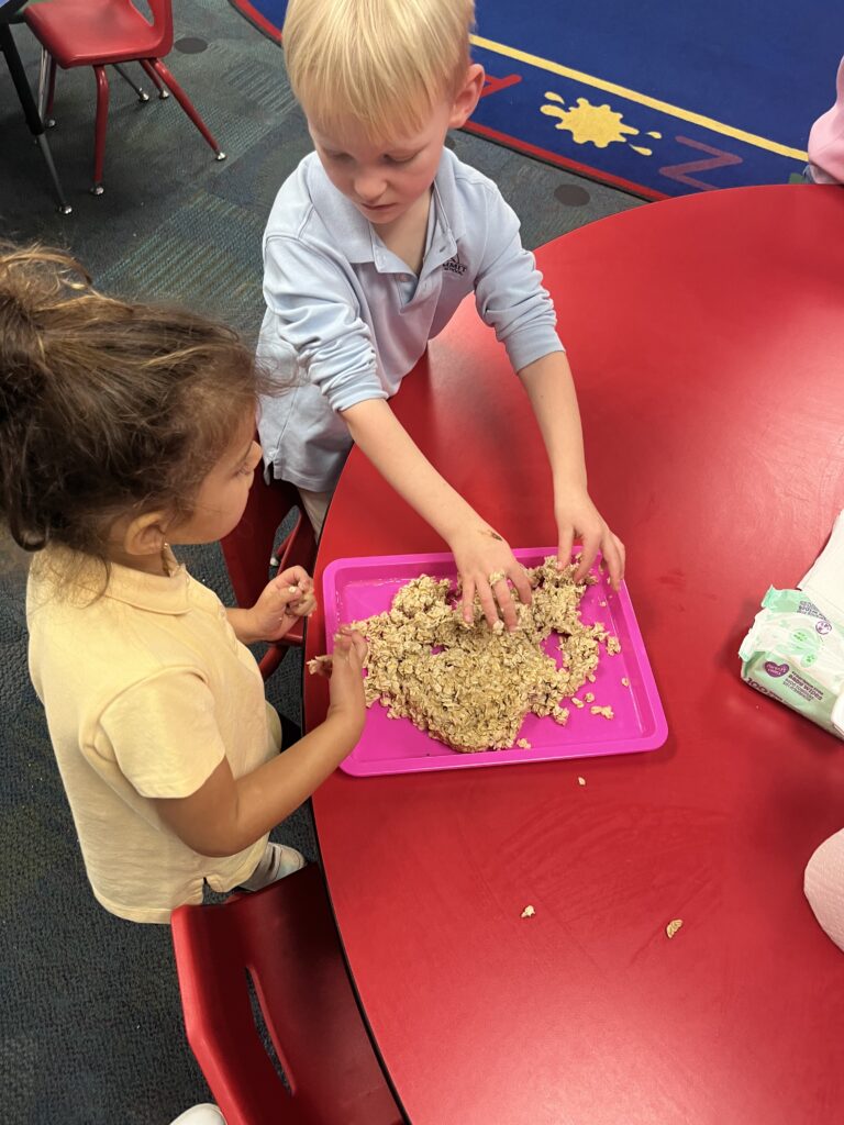 One of our Trimester 2 themes is exploring the five senses. What better way to incorporate the sense of touch than when our letter of the week is G and we can get our hands in all things gooey! Students explored the feeling of warm oatmeal, cold apple sauce and jello, as well as some pudding, mashed bananas, and oobleck.