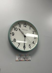 Since returning from Winter break, we have focused on telling time in Spanish in our high school class. After a quick review of number vocabulary, students practiced reading both digital and analog clocks through class discussions and interactive games. One activity, a scavenger hunt called “Corre en Círculos,” had students move around the room reading and writing times at different stations. We used natural phrasing — for example, Es la una, Son las tres y cuarto, and Son las nueve menos cinco — and briefly reviewed the conjugations of ser used for telling time alongside some key time‑related vocabulary and expressions. The unit strengthened number fluency and student confidence using time in everyday contexts.