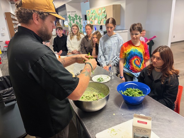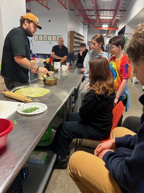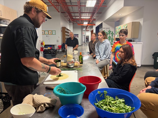 Last week in the High School Outdoor Cooking elective students went on a foraging walk with local wild edibles expert and chef, Dyllan Dale. Students explored a piece of private property along the James River learning about edible and non-edible flora. Then, Dyllan joined us at the school to cook up the foraged items we found the day before. Students enjoyed watercress pasta and pawpaw ice cream.