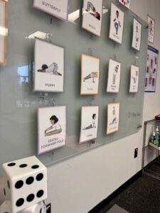 Our year is off to a great start in yoga. I am continuing our discussion about positive things this year and I have already introduced a few new games to play with our yoga poses. The first class of school we played “This or That” with some pose cards I had made. Last week we played a dice game and each student had an opportunity to roll the dice and do the corresponding pose that matched their number. Students quickly learned that there is no controlling the dice and ended up doing the same pose over and over. But everyone had fun!