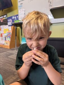 This week, we wrapped up the unit with activities centered on the senses of smell and taste. Yesterday, I asked students during lunch if their food tasted bitter, sour, salty, or sweet. For smell, students passed around little jars containing different scents. They enjoyed this activity because they could identify which smells they liked or disliked.