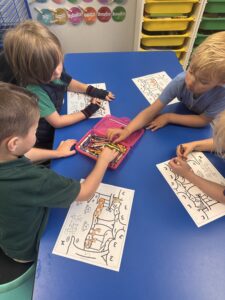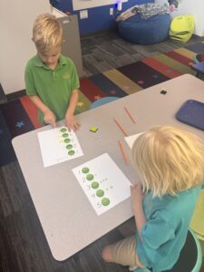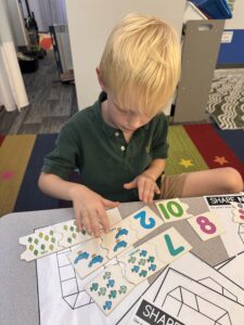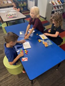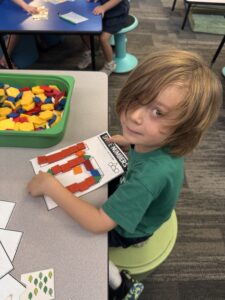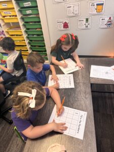 More specifically, kindergarten students have been using hands-on math manipulatives to visually understand how to count objects and determine total amounts. They have been introduced to various strategies for discussing numbers, including using ten frames, drawing pictures to represent numbers, and writing tally marks. Furthermore, students are learning how to group numbers so they can count by 2’s, 5’s, and 10’s. They have discovered that grouping object can help them reach the total amount more quickly, especially when dealing with larger quantities! As we conclude this unit on numbers 0-10, we will soon begin exploring teen numbers.