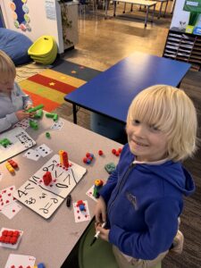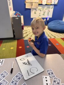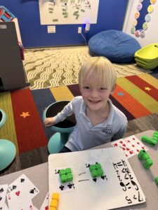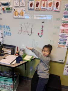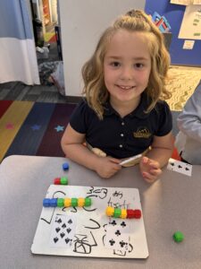 One activity that aligns with the unit that the students completed was an interactive activity where they used their bodies to create the comparison symbols. The students demonstrated great understanding and enthusiasm during the activity! To further develop this concept, the students were rolled two huge dice to pick two numbers to compare and demonstrate their understanding by drawing an alligator that “eats” the greater number. They were tasked with representing both numbers in a different way to showcase their comprehension. Their creations turned out so good that they are hung outside our classroom! Some station activities the students have completed include weighing manipulative bears to compare quantities, examining pictures of flowers with varying numbers of petals, building number representations, and using whiteboards to draw the amounts and symbols. As the week goes on, students will learn to compare more double digit numbers AND take a look at triple digit numbers!