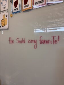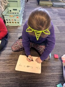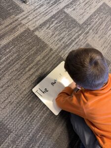 The Kindergarteners have shown remarkable improvement in their writing skills. They are now able to connect multiple sentences and produce legible writing. Every morning, they practice writing their name for attendance. They also write sentences on whiteboards, in their learning journals by themselves, with a partner, and with their table friends. Using the conventions of print, such as left-to-right directionality, spacing, proper capitalization, and end punctuation, is something they continue to work on. Phonetic spelling is still being used, but the students are starting to use sight word knowledge and spelling patterns to spell conventionally. A new class activity called “Fix it!” has been introduced, where the students analyze and correct the punctuation, spacing, and capitalization of a given sentence. This activity allows them to see what could be wrong with a sentence as well as what needs to be fixed! Try this activity at home!