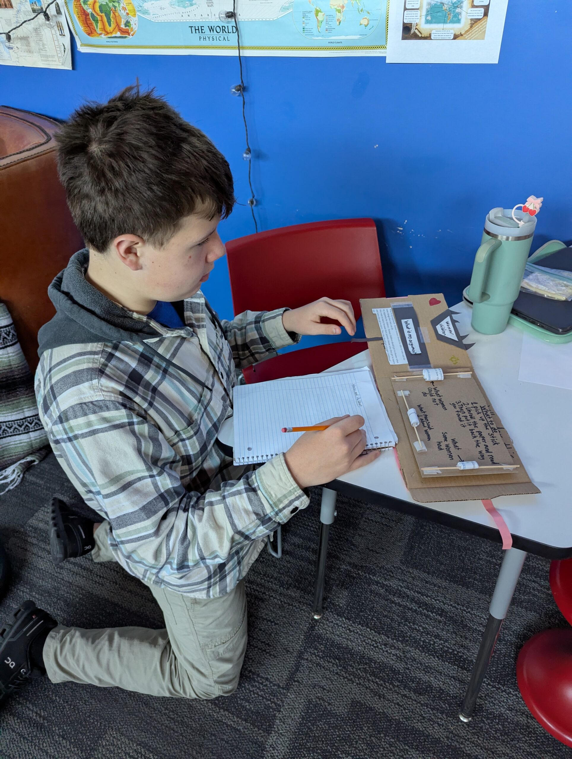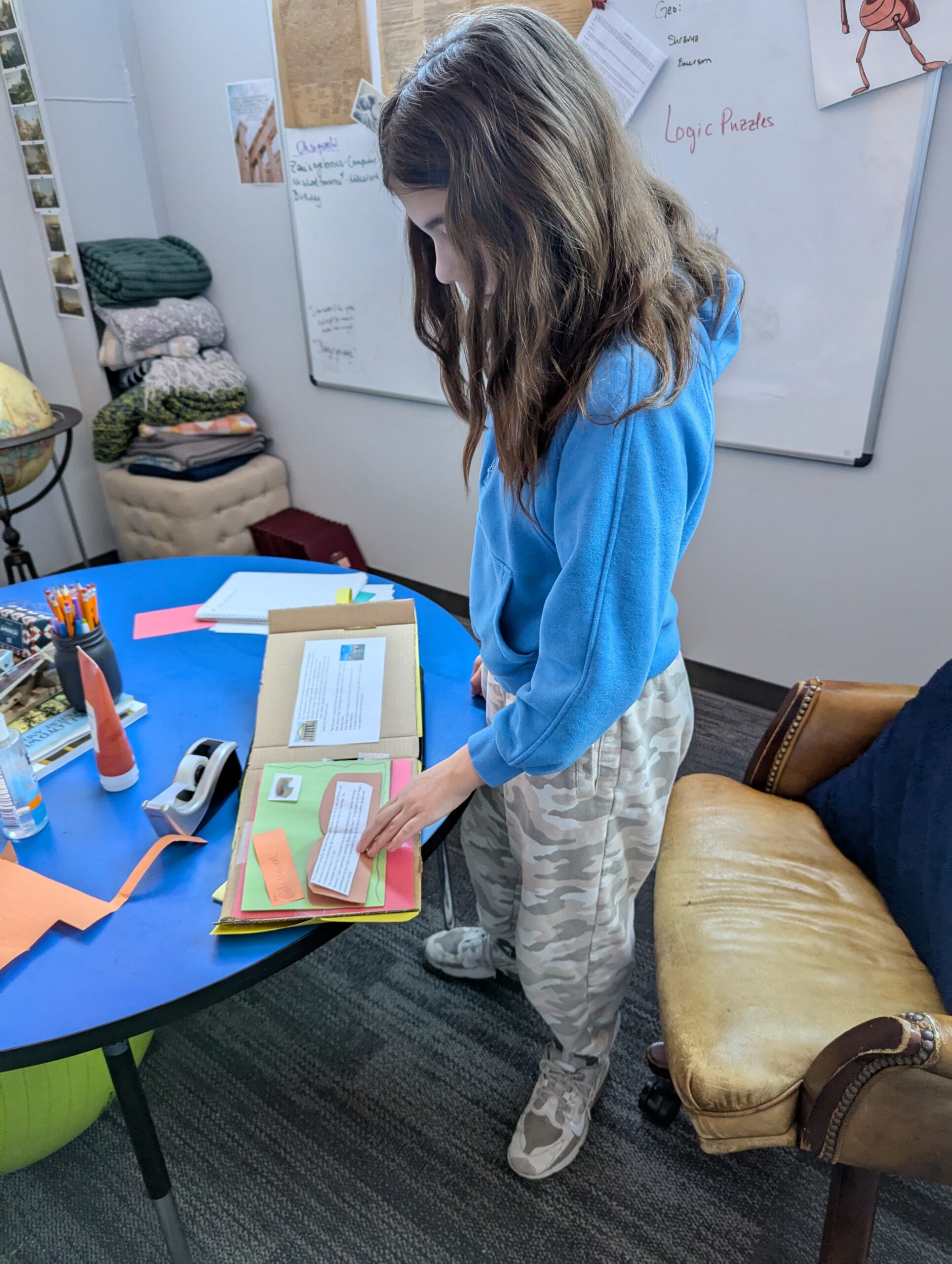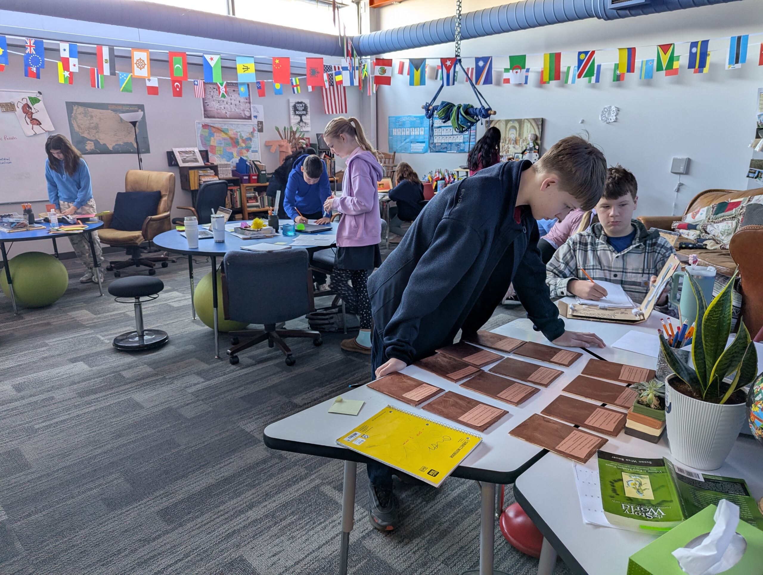 Students in sixth grade wrapped up their Rome research projects today with a gallery walk. They took notes on each other’s projects and left feedback for each other throughout our class this morning. One student recreated the Twelve Tables (the basis of Roman law) on small pieces of wood. A few others opted to create books to showcase their learning. Several chose to create slideshows, while others chose to write papers. It was great to see their creative approaches to sharing their research and arguments.